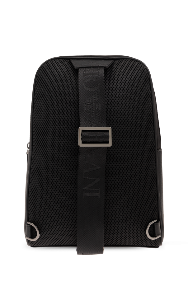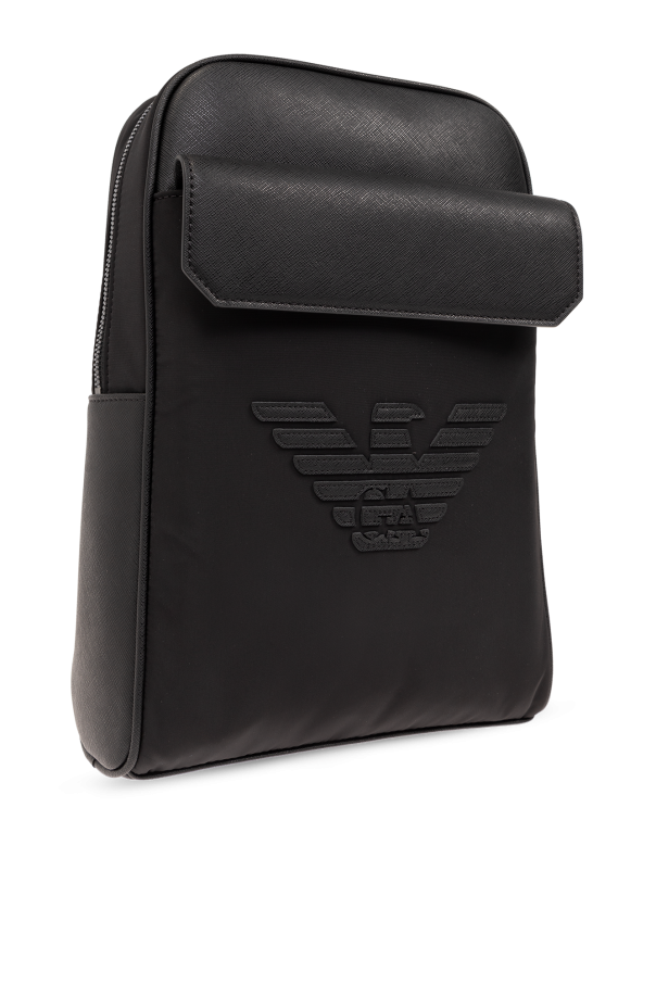 Introducing the pinnacle of modern sustainability and style, the Emporio Armani \'Sustainability\' Collection Backpack. Tailored for the discerning man, this accessory transcends mere functionality to become a statement of eco-conscious elegance. Its classic black hue ensures versatility, while the smooth, possibly eco-friendly material with a subtle grain-like texture speaks volumes of refined taste and commitment to environmental stewardship. The backpack\'s design is a harmonious blend of form and function, featuring a sleek rectangular shape with softly rounded corners on the top flap, ensuring a contemporary silhouette. The front flap proudly bears an embossed wing-shaped logo, matching the backpack\'s color for a discreet yet unmistakable mark of luxury. Durability meets design with a robust zipper closure, complemented by the brand\'s name embossed along the straps, further solidifying its designer pedigree. Practicality is not sacrificed at the altar of style; adjustable straps offer a customizable fit, while an external side pocket with a zipper provides convenient access to essentials. This product is not just a backpack but a testament to the harmonious coexistence of luxury and sustainability. Why Purchase This Product? Eco-Friendly Sophistication: Crafted from materials that suggest a commitment to sustainability without compromising on style. Iconic Design: The embossed wing-shaped logo and brand name on the straps serve as a subtle nod to the Emporio Armani legacy. Functional Elegance: With adjustable straps and an external pocket, the backpack combines utility with luxury. Timeless Appeal: Its classic black color and refined texture make it a versatile choice for any wardrobe.