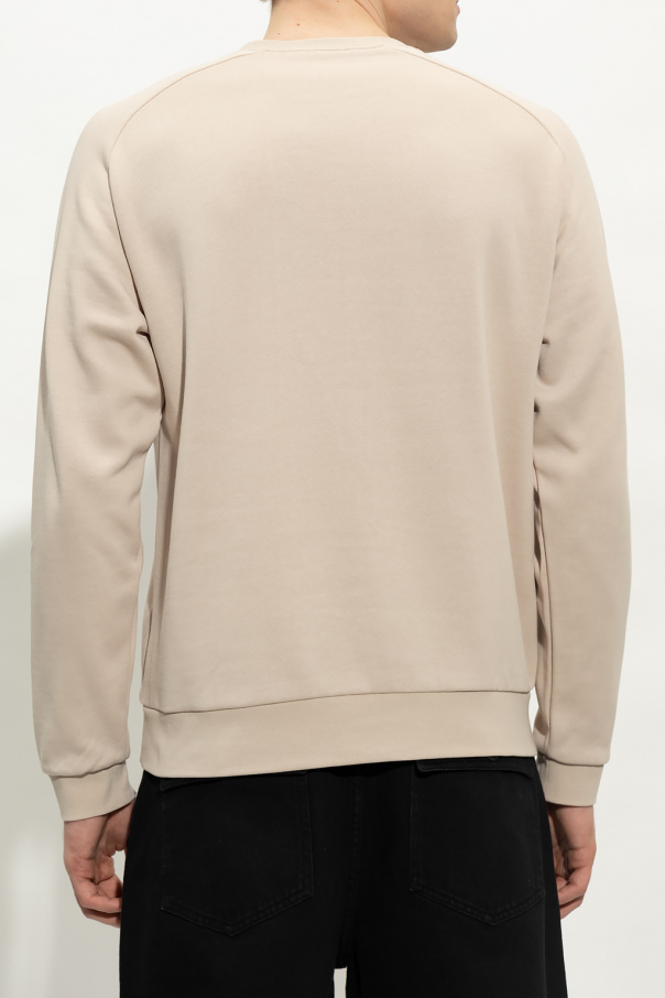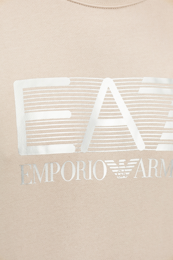 Light beige crewneck sweatshirt from EA7 Emporio Armani. Crafted from cotton jersey, this style features a printed silver-tone logo on the front, a slip pocket and ribbed trims on the collar, bottom hem and cuffs.