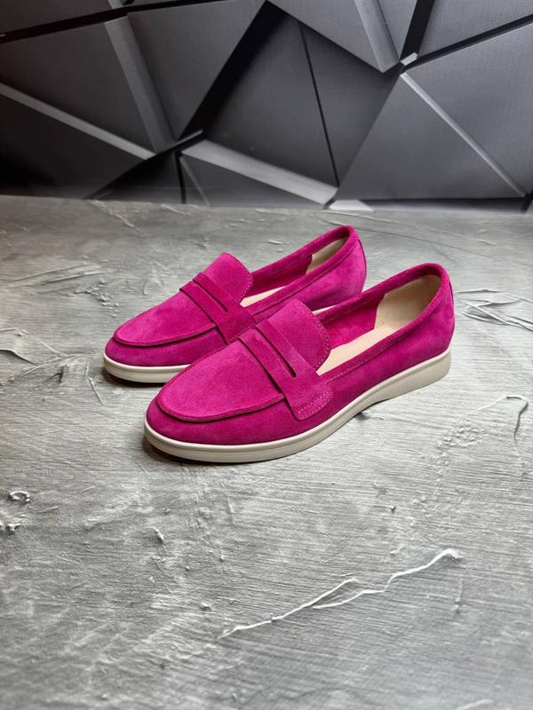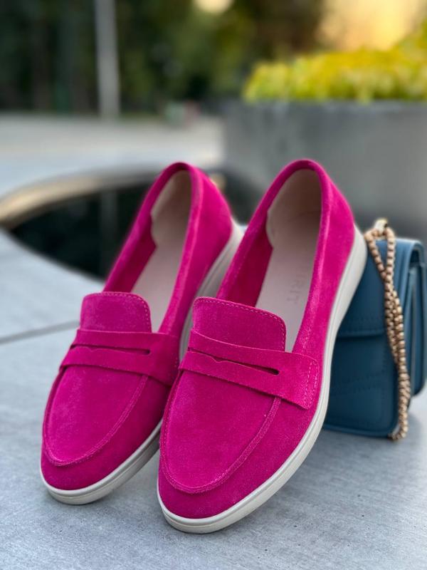 Яскраві жіночі лофери з натуральної замші малинового кольору