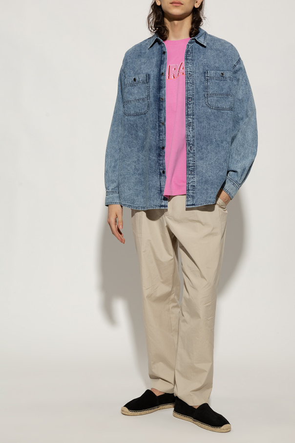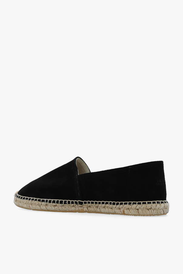 Black ‘Canao’ espadrilles from MARANT. Made of leather, this pair has an embossed logo at the back and beige rubber sole.