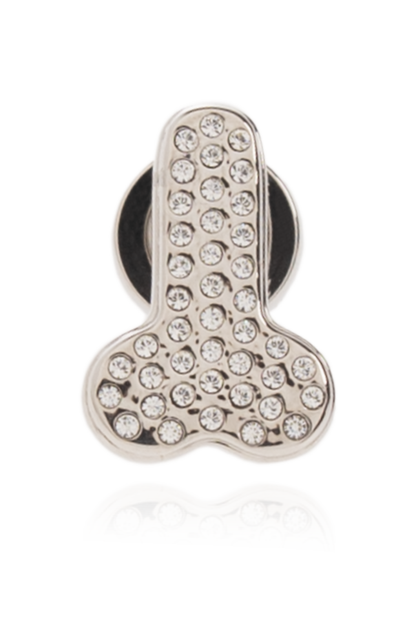 Silver-tone mono earring from JW Anderson. Made of brass and encrusted with glistening crystals, this item secures with a logo-engraved push back closure.