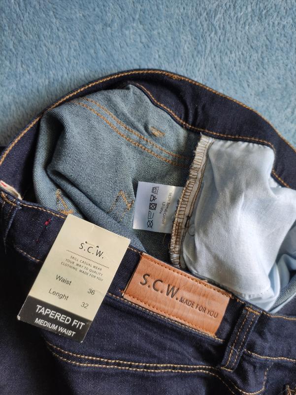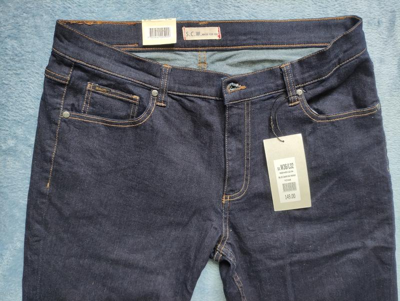 Джинсы S.C.W. (шведский бренд), пояс 36/32 длинна, эластичные, 98.5% котон 1.5% лайкра, темно синий, чернильный цвет, джинс средней плотности, мягкий, приятный.
