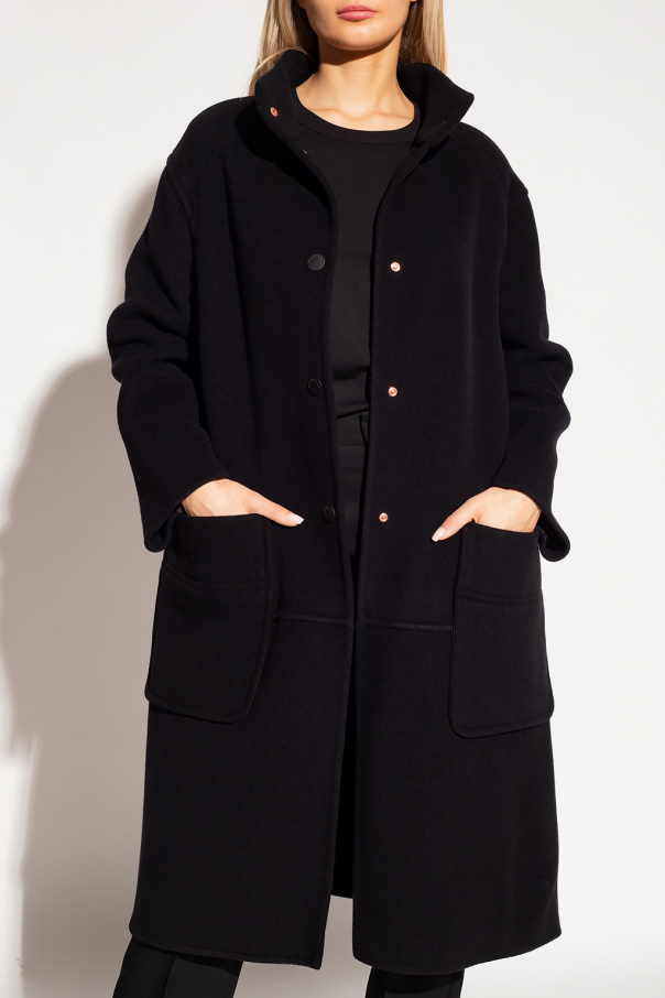 Black coat from See By Chloe. Made from wool, this style features snap fastenings, a standing collar, long sleeves and two vast pockets on the front.