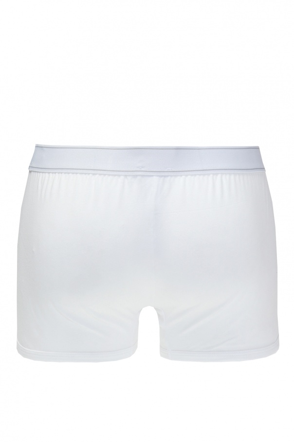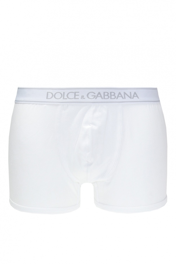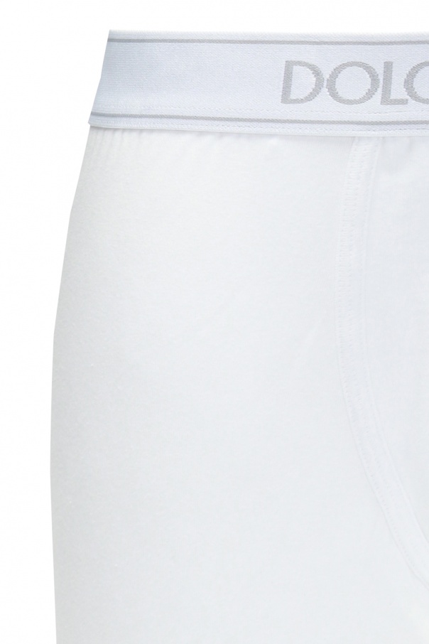 White boxers from Dolce & Gabbana. Made of cotton. Decorated with embroidered logo stripes in grey.