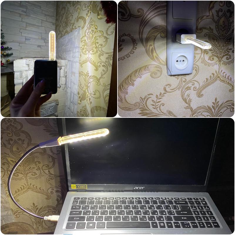 Портативний USB світильник-лампа для книг, нічний світильник, лампа для кімнати, аварійне освітлення, підходить для зовнішнього акумулятора павербанка, комп'ютера, можна встановити в блок живлення, в телефон - через перехідник, будь-який інший пристрій, який має USB роз'єм.
