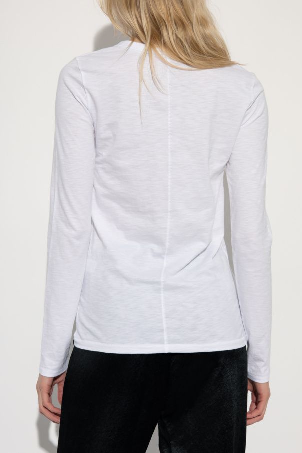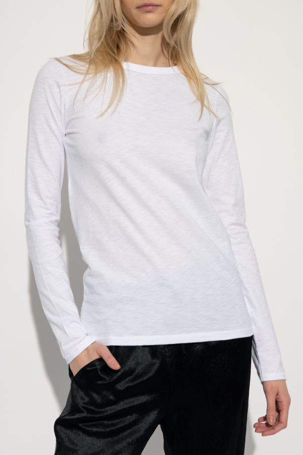 White crewneck T-shirt from Rag & Bone. Made of cotton, this style features a slim-fitting silhouette and long sleeves sleeves.