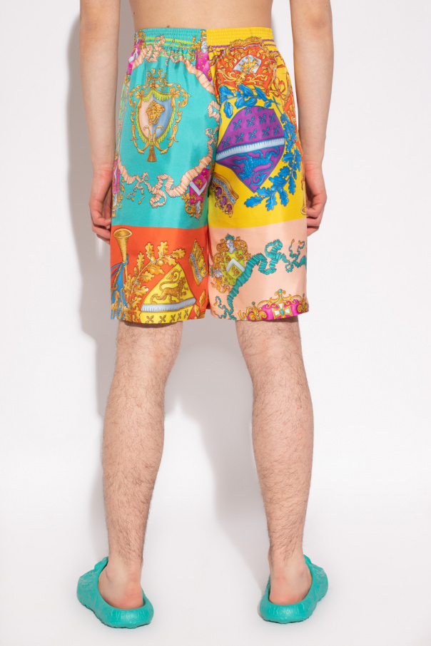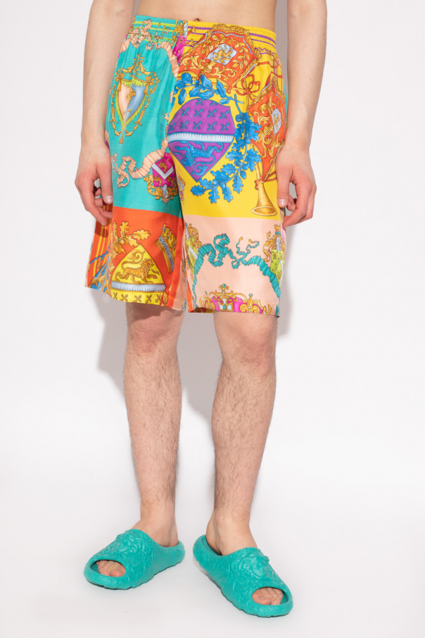 Multicoloured shorts from Versace. Made of silk, this pair showcases the brand\'s Royal Rebellion print, a drawstring waist, two pockets on the front and one at the back.