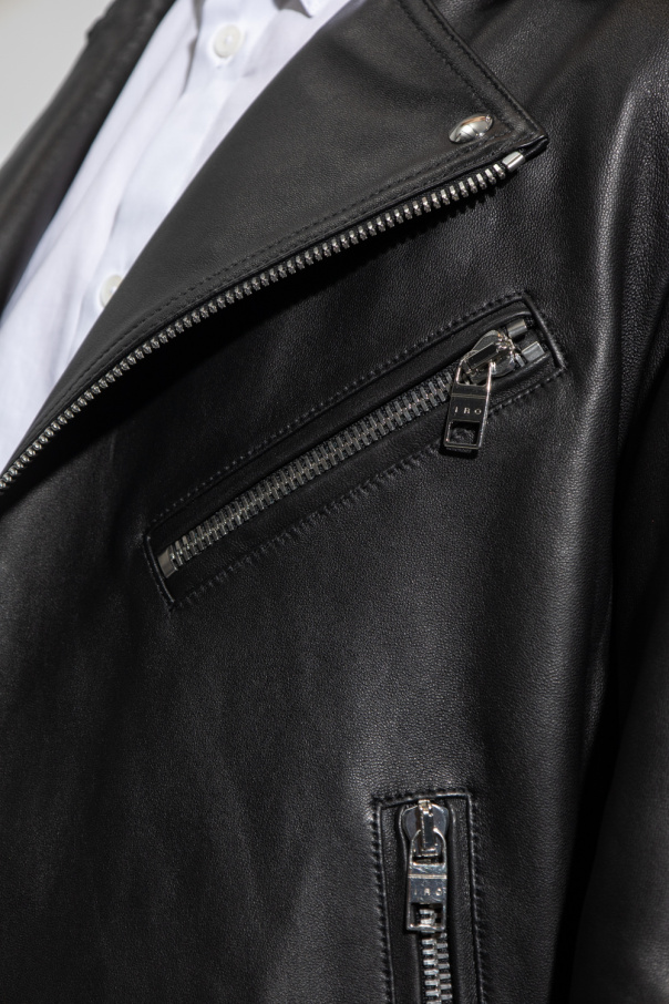 Black ‘Hadro’ biker jacket from Iro. Made of lamb leather, this garment features a two-way zip, three front pockets, epaulettes and long sleeves with zip fastenings.