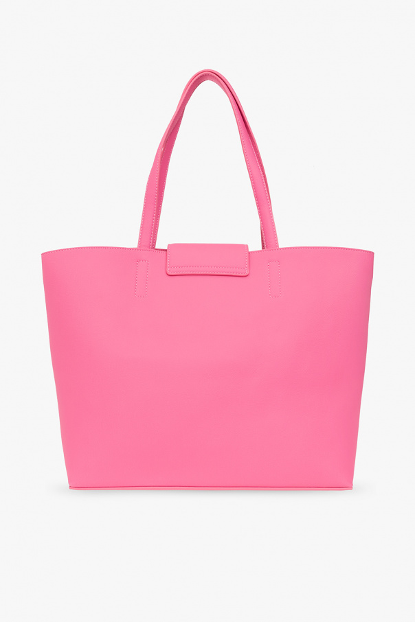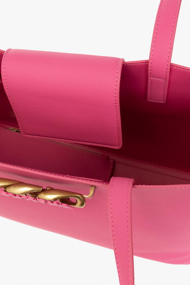 Pink shopper bag from Versace Jeans Couture. Crafted from faux leather, this design features a sliding fastening with logo-embossed chain detailing, two half-round handles, antiqued gold-tone metal hardware and one internal compartment with a detachable branded zip pouch on a chain strap.