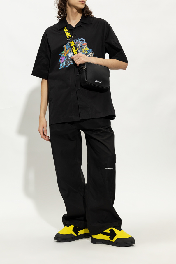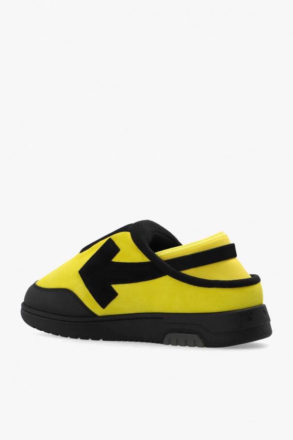Yellow and black sneakers from Off-White. Made of suede and fabric trims, this slip-on pair features an Arrows patch, logo print and black rubber sole.