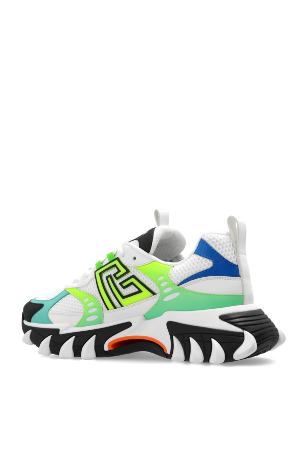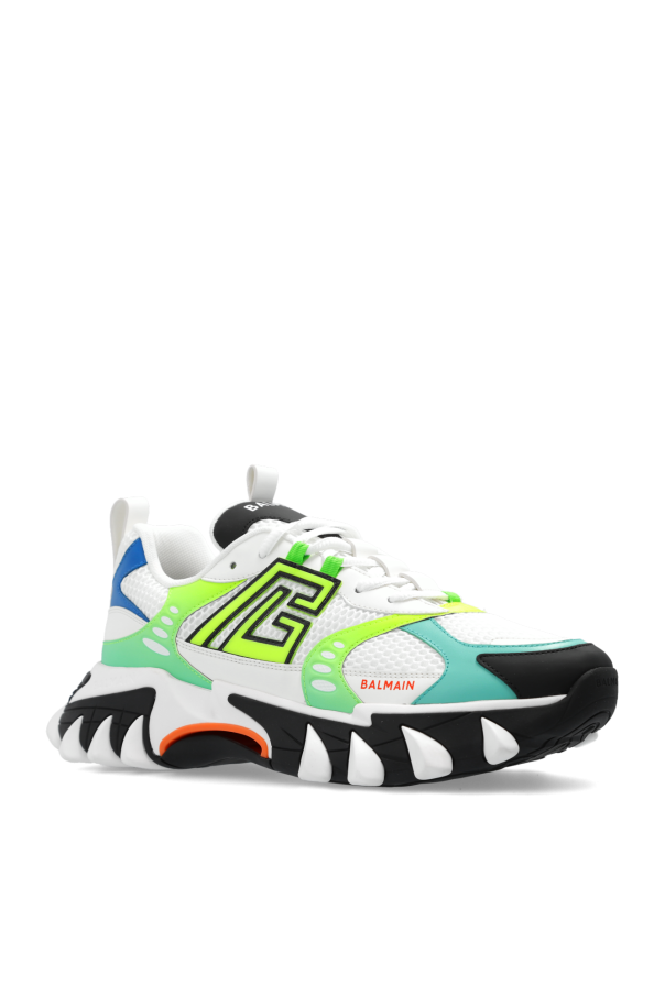 Multicoloured ‘B-East’ sneakers from Balmain. Made from mesh with leather trim, this lace-up model sits on a black and white rubber sole and showcases the brand\'s logo on the sides.