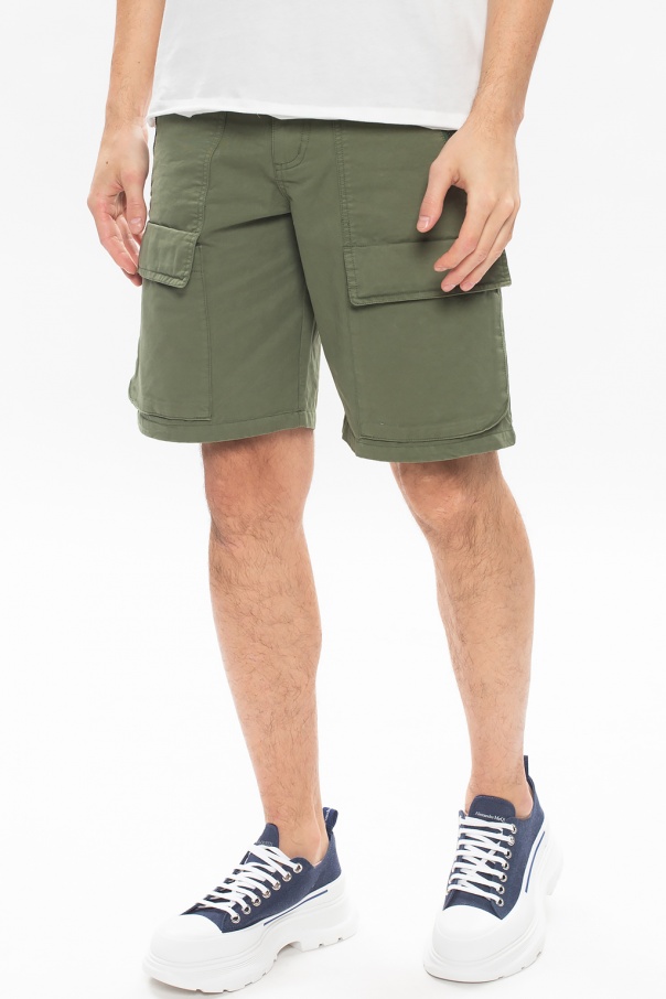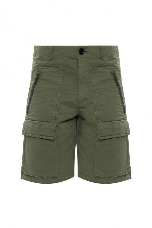 Green shorts from Zadig & Voltaire. Made of cotton, this design features zip and button fastening, pockets with velcro-fastened flaps, two zip pockets and a green logo patch at the back.