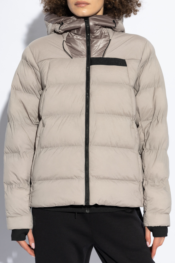 Introducing the \'Challenger\' — an exquisite insulated training jacket designed for the discerning woman. This gray masterpiece, adorned with subtle hints of violet, elegantly marries form and function, ensuring you remain stylishly warm during your winter escapades. Crafted with precision by On Running, a vanguard in sports innovation, the jacket features a straight, slightly tailored cut with horizontal quilted lines, enhancing both warmth and aesthetic appeal. The exterior boasts a blend of recycled polyamide and elastane, offering a lightweight yet wind and rain-resistant armor. Inside, the polyester lining ensures breathability and insulation. Functionality meets style with the central zipper and subtle logo adorning the back. The adjustable hood and elastic cuffs provide personalized comfort, while the decorative black stripe on the chest adds a touch of sophistication. Two zippered pockets complete this quintessential ski wear essential. Why Choose This Product? A perfect blend of style and practicality for winter sports. Wind and rain-resistant with recycled materials. Adjustable features for tailored comfort. Designed by renowned Swiss innovators in activewear. Distinctive design with functional details.