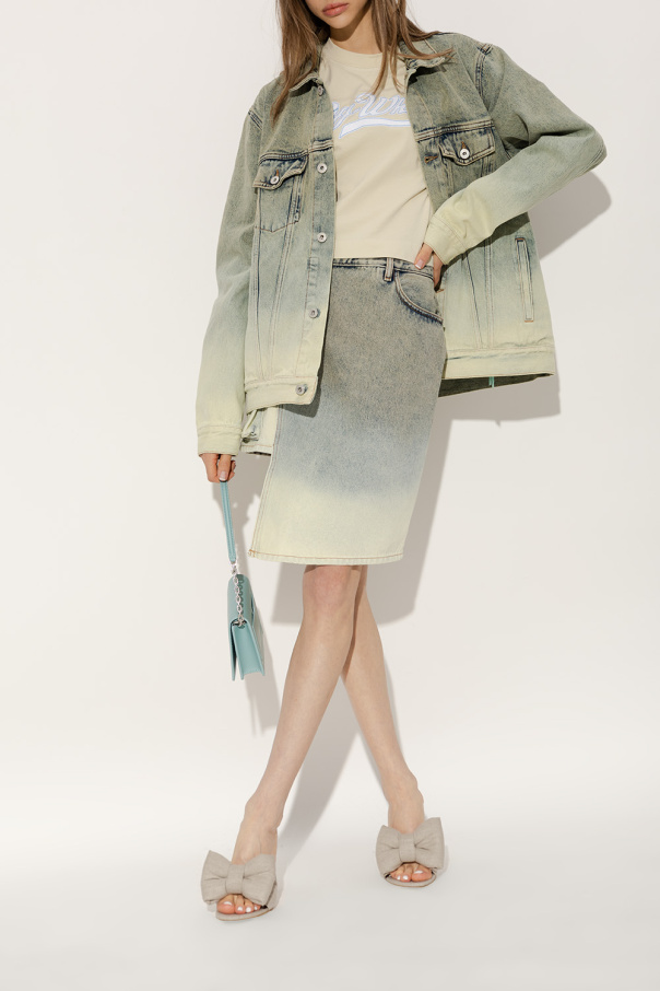 Greyish beige ‘Allen’ heeled mules from Off-White. Crafted from linen, this pair features a decorative bow, signature metal Allen Key heel with an engraved logo in gold-tone and beige leather sole.