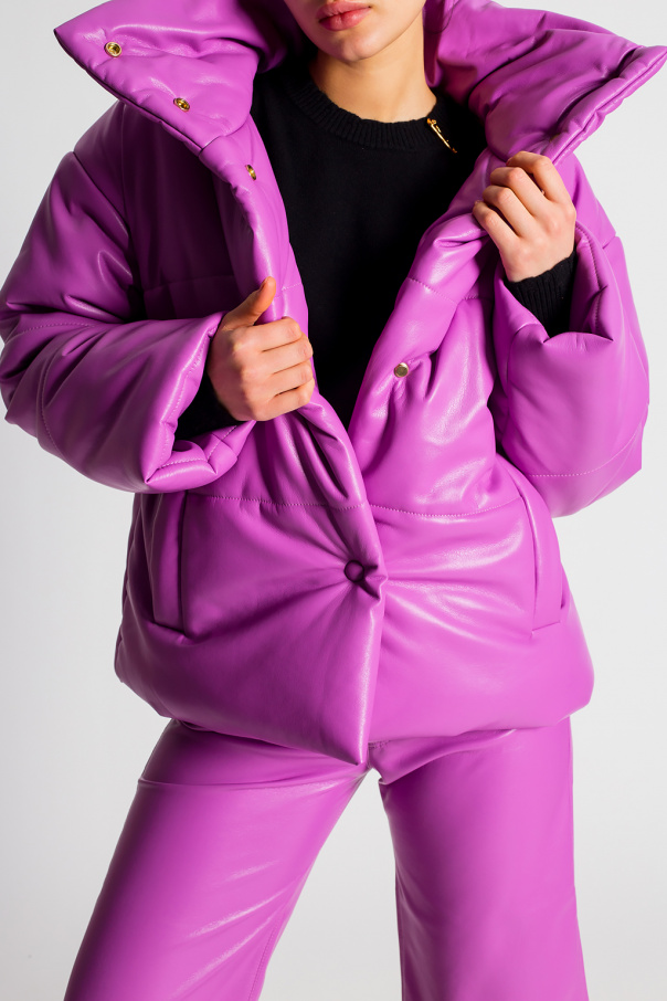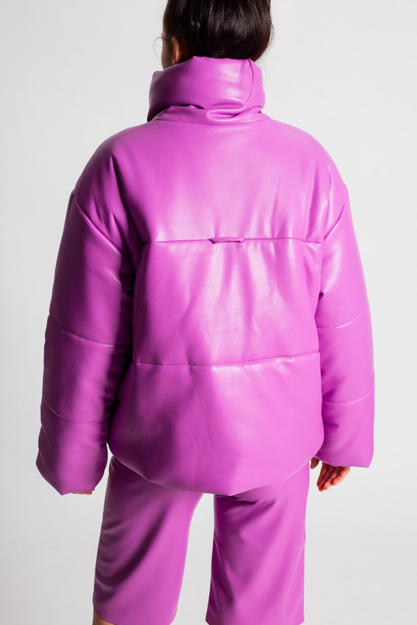Pink jacket with a high neck from Nanushka. Made of vegan leather, this garment features two slip pockets and long sleeves.