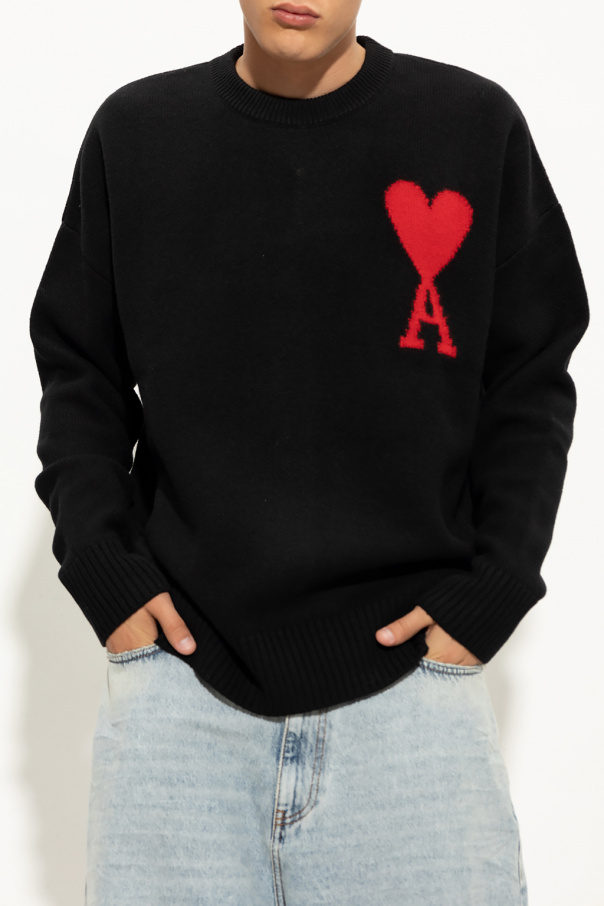 Black sweater from Ami Alexandre Mattiussi. Made of wool, this loose-fitting garment features an ‘Ami De Coeur’ logo embroidery in red and ribbed trims at the hem and cuffs.