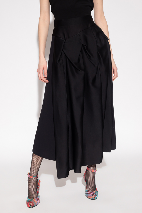 Black skirt from Vivienne Westwood. Crafted from a viscose blend, this style features a back zip accompanied by a button closure, decorative gathers and vents.