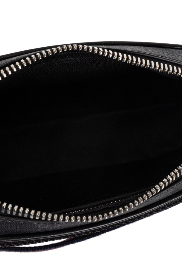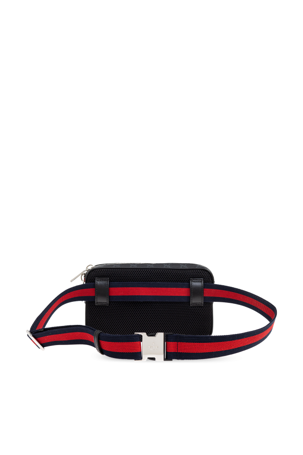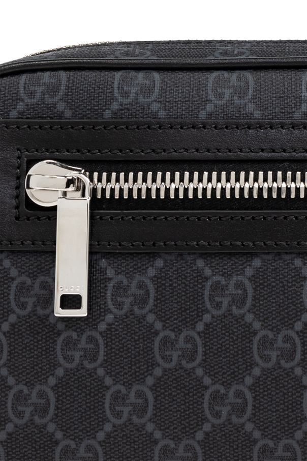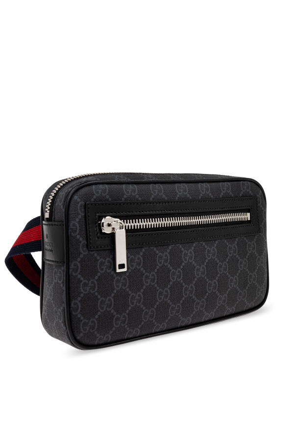 Introducing the Belt Bag with Logo by Gucci, a paragon of sartorial elegance and functionality. This exquisite accessory is meticulously crafted from durable canvas with a protective coating that ensures longevity. Its sophisticated dark gray hue coupled with a distinctive monogram pattern exudes an air of understated luxury. The bag features a rectangular silhouette with rounded edges, highlighted by a dual-zip closure system for both the main compartment and the front pocket, adorned with subtly embossed designer logos on the metal elements. Inside, you will find a spacious, cotton-lined interior complete with an additional zippered pocket for enhanced organization. The adjustable strap is adorned with a navy-red-navy pattern, a nod to classic brand colors, offering both style and comfort. This belt bag is emblematic of Gucci\'s commitment to innovation and Italian craftsmanship, seamlessly blending modern aesthetics with timeless appeal. Why Purchase this Product? Elegantly designed with a signature monogram pattern. Constructed from durable materials for long-lasting use. Features a spacious interior with multiple secure compartments. Adjustable strap for customized comfort. Embody the luxurious essence of Gucci.