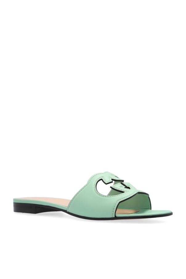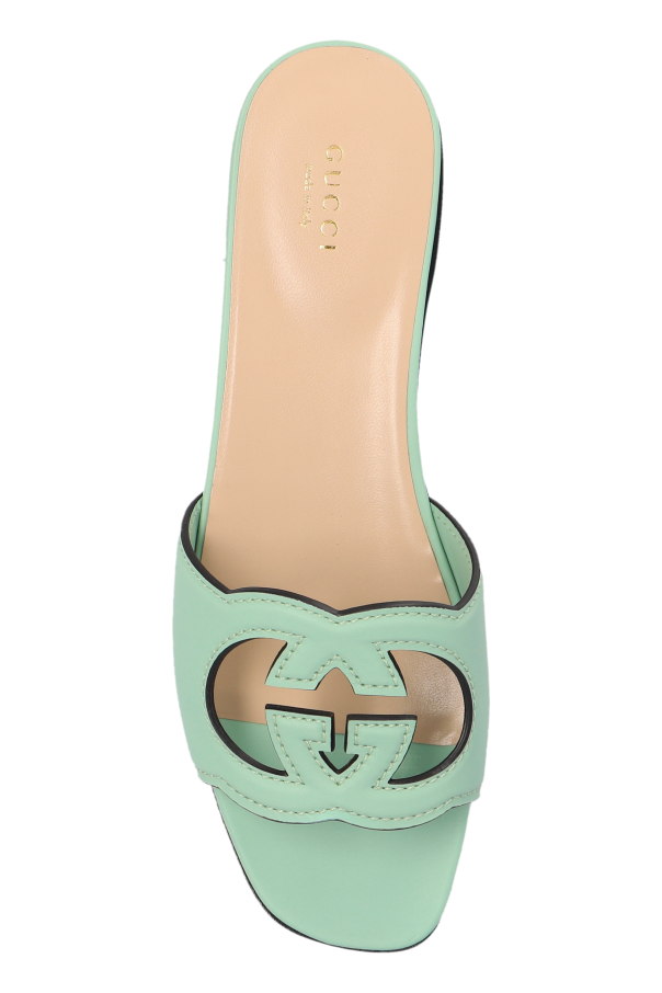 Introducing the epitome of sophistication and timeless elegance – the Interlocking G Slides by Gucci. Exquisitely crafted from premium leather, these slides epitomize luxurious comfort and style. Featuring a distinctive flat sole with a low heel, the design showcases an open-toe front and a strap adorned with a cut-out double \"G\" motif. This signature pattern not only adds a touch of opulence but also elegantly highlights the brand\'s esteemed logo. The interior is meticulously lined with supple leather, ensuring an unparalleled level of comfort. A golden inscription of \"GUCCI\" and \"Made in Italy\" on the insole further enhances the allure of these exquisite slides. Designed in a stunning mint green hue, these slides are versatile enough to complement both casual and formal summer ensembles. The flat sole with a low heel guarantees ease of wear, making them an impeccable choice for any occasion. Why Choose This Product? Exquisite Craftsmanship: Made from high-quality leather. Signature Design: Features the iconic double \"G\" cut-out pattern. Unmatched Comfort: Leather interior for a luxurious feel. Versatile Style: Perfect for both casual and elegant outfits. Authentic Branding: Gold \"GUCCI\" and \"Made in Italy\" inscription.
