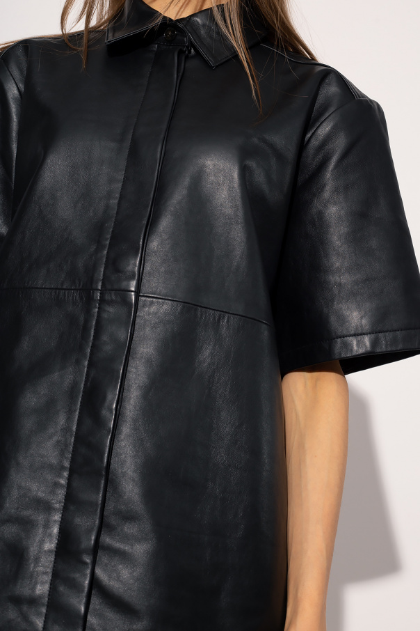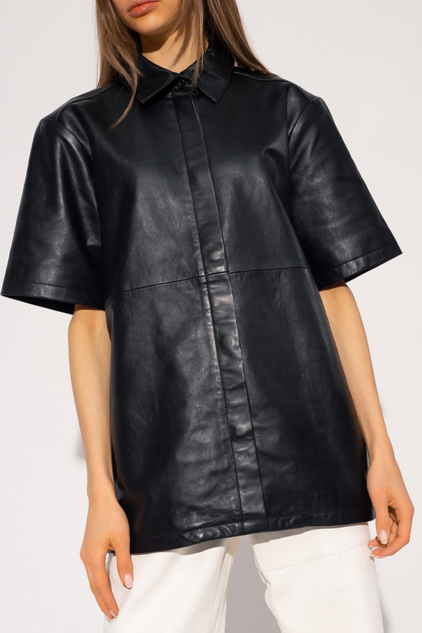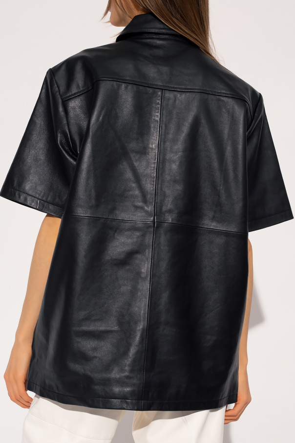 Black ‘Kaleed’ shirt with a collar from Birgitte Herskind. Crafted from chrome-free lamb leather, this style features button fastenings and short sleeves.