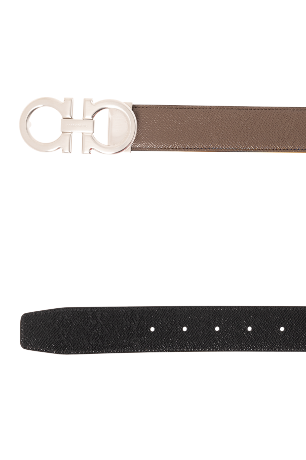 Reversible belt in brown and black from FERRAGAMO. Made of calf leather, this item features a silver-tone buckle with a logo.