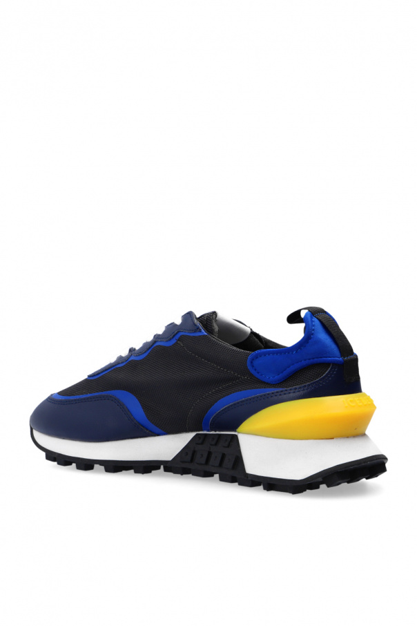 Black, blue and yellow sneakers from Iceberg. Finished with leather, this lace-up model sits on a black and white rubber sole and showcases the brand\'s logo.