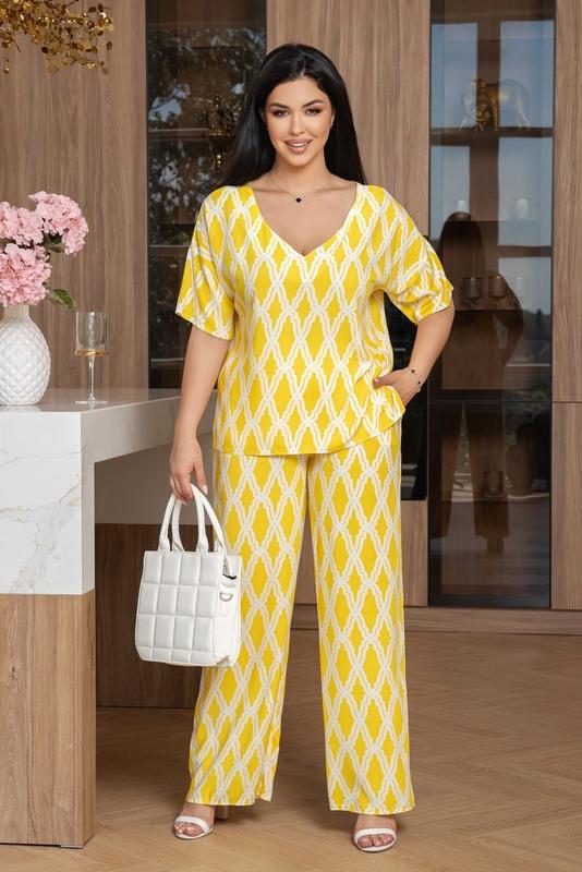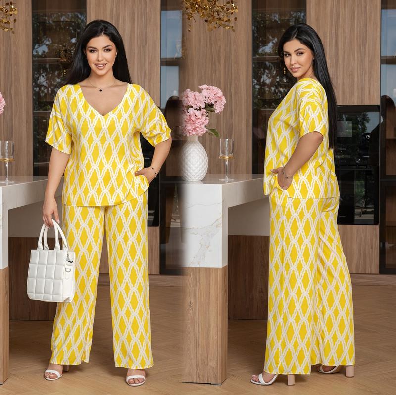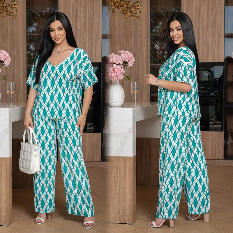 Длина кофты: 67 см. Длина рукава: 38 см (от горловины). Длина брюк: 105 см (пояс на резинке). Практичный стильный костюм, брюки прямого покроя, с боковыми карманами, пояс на резинке. Кофта кимоно прямого покроя, с V образным вырезом. Ткань натуральное хорошее качество, износостойкая, не линяет, не кашлатится, приятная на ощупь.Состояние: НовоеЦвет:- Белый