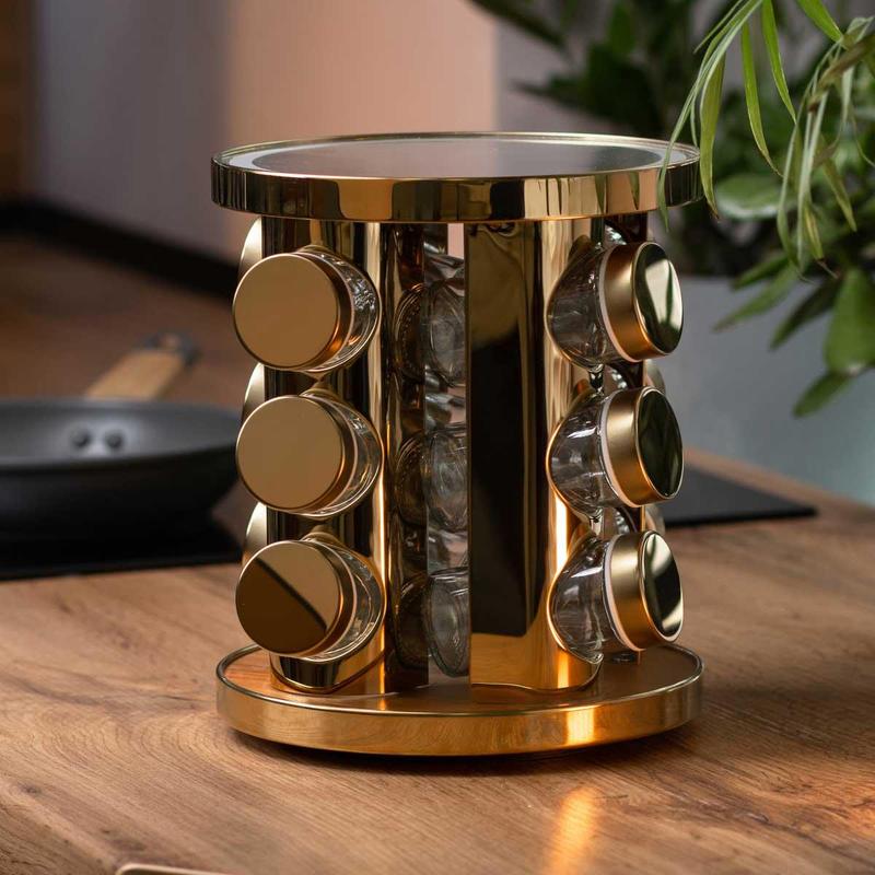 крышку для надежного хранения специй. Подставка, выполненная в зеркальном
