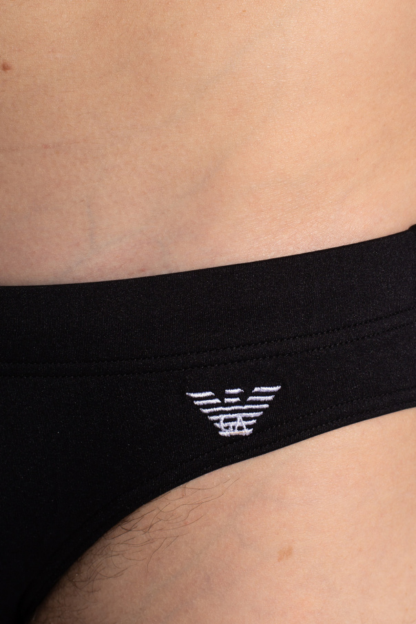 Black swim briefs from Emporio Armani. Fastened with drawstrings, this design features a white logo embroidery.