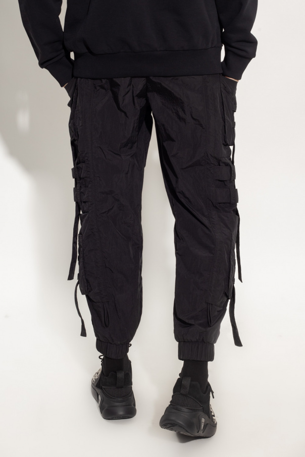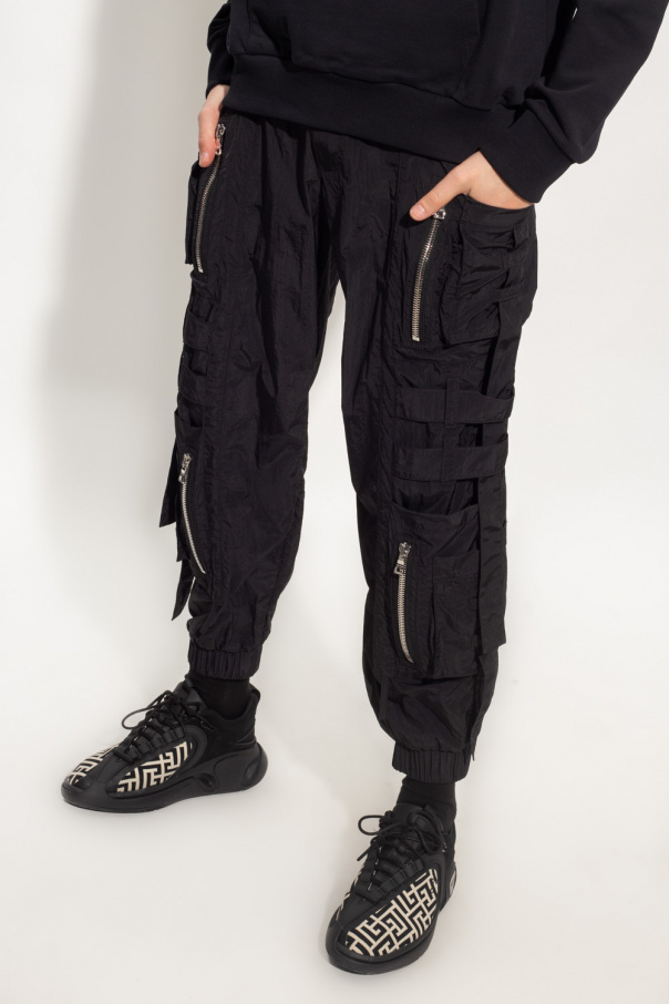 Black trousers from Balmain. Equipped with eight slip pockets and four zip pockets, this pair features an elasticated waistband and decorative stitching details.