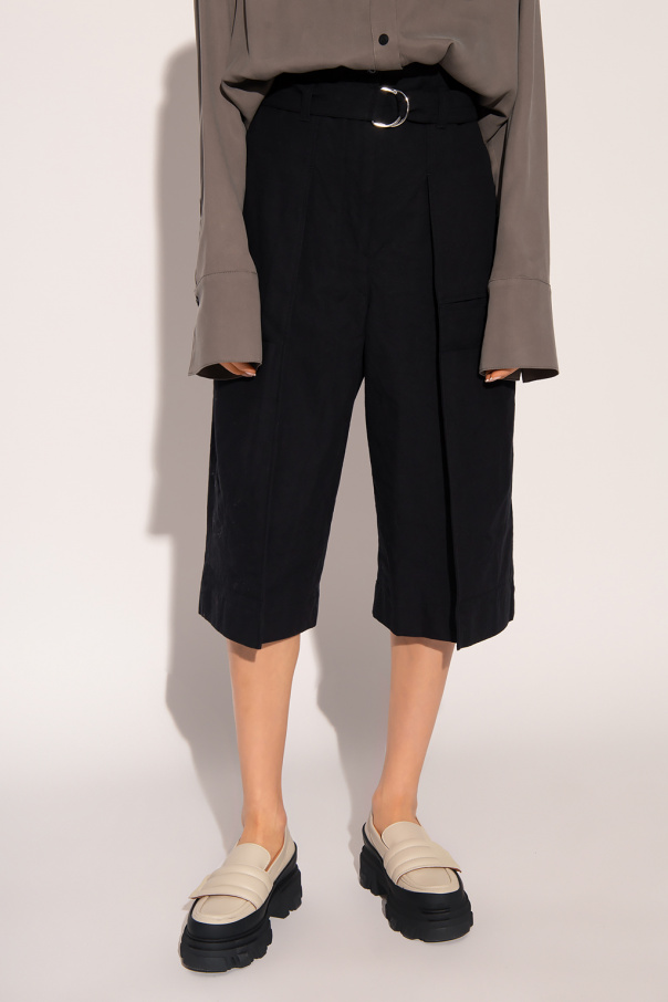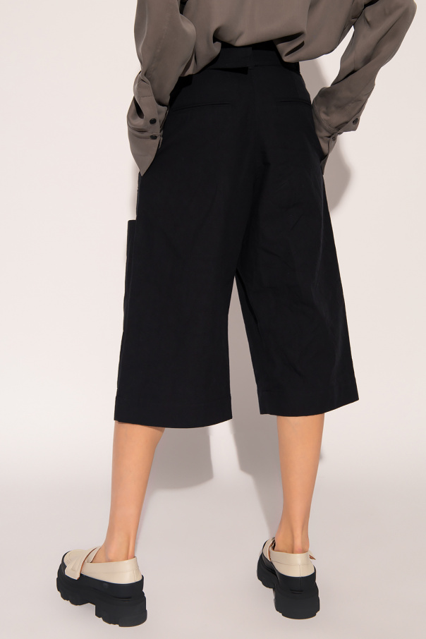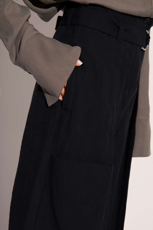 Black high-waisted cargo shorts from Lemaire. Made of cotton, this garment features a button, zip and waist belt, five front pockets and two back pockets.