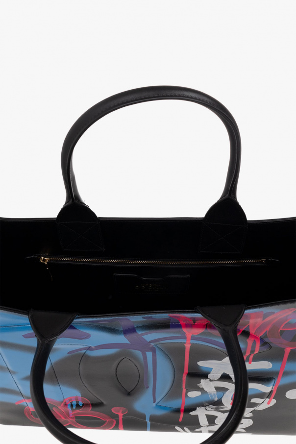 Multicolored shopper bag from Dolce & Gabbana. Crafted from calf leather, this item is decorated with an embossed pattern and paint splatter effect. It is complete with two half-round handles, gold-tone metal hardware and one internal compartment with two slip pockets and one zip pocket.