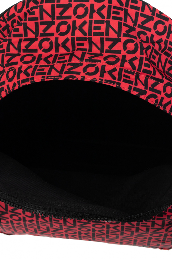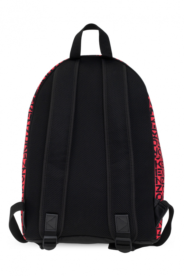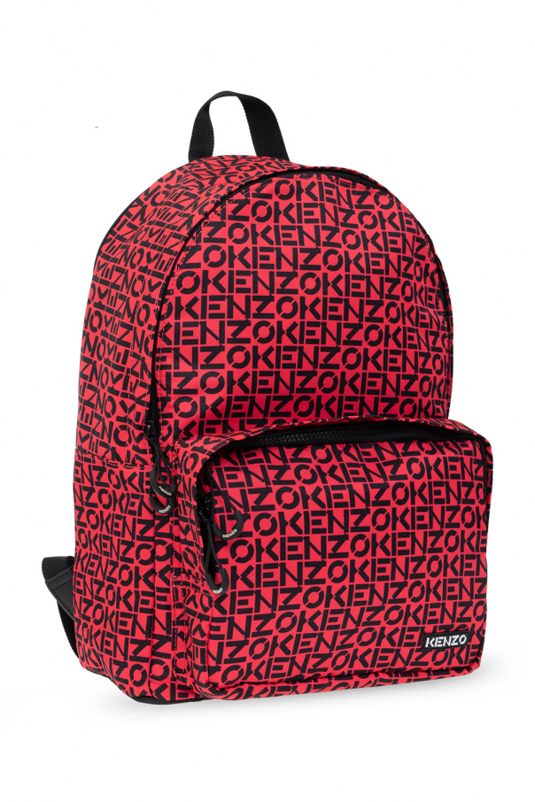 Red ‘Kenzo Repeat’ backpack from Kenzo. Embellished with a black monogram pattern, this design features a two-way zip fastening, an external zip pocket with a rubber logo patch on the front, a top handle, adjustable shoulder straps and one internal compartment with a card slot.