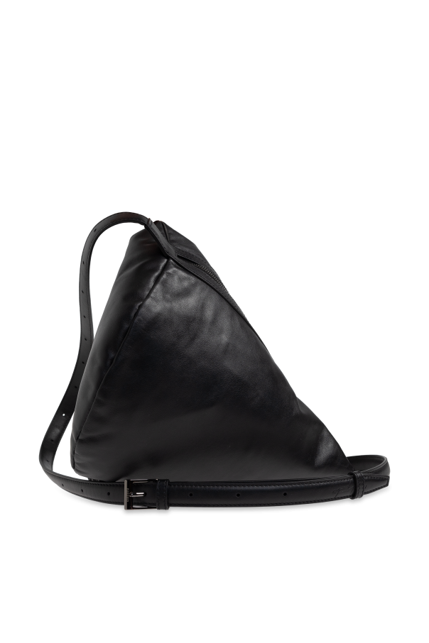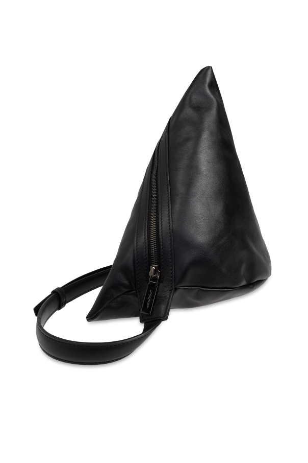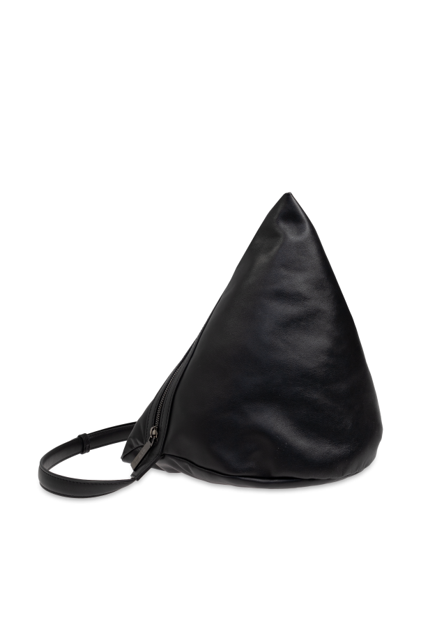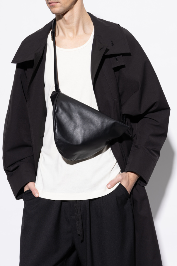 Introducing the Leather Bag by the renowned Discord Yohji Yamamoto, an exquisite masterpiece that epitomizes modern elegance and avant-garde sophistication. Drawing inspiration from the art of deconstruction, this bag boasts a unique geometric shape reminiscent of a cone or triangle, crafted from smooth, premium leather in a timeless black hue. Its minimalist design eschews overt logos, favoring a subtle yet bold statement. The bag features a long, adjustable strap for versatile wear, whether over the shoulder or across the body. A discreet zipper along one edge ensures easy access, revealing an interior with a zippered compartment for secure storage. Why Choose This Product? Crafted from high-quality leather for a luxurious feel Innovative design that stands out with its geometric form Adjustable strap for versatile styling Secure zipper closure and ample interior space Embodying the spirit of Japanese street culture with elegance