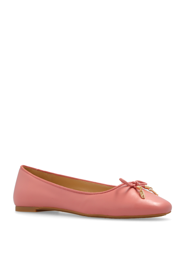 Pink ballet flats from Michael Michael Kors. Made of leather, this pair features a bow and beige rubber sole.