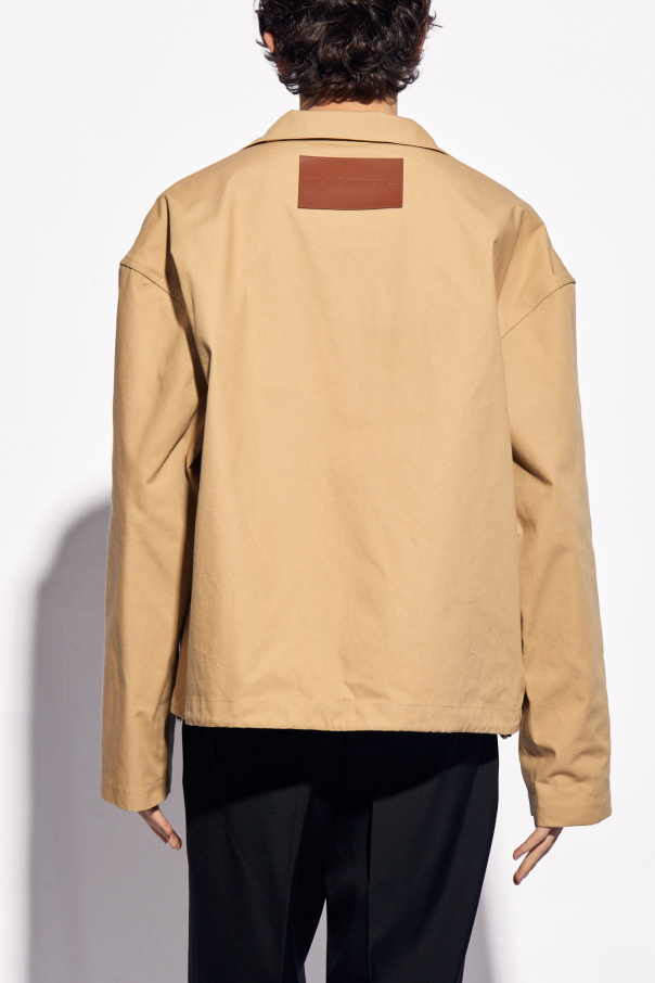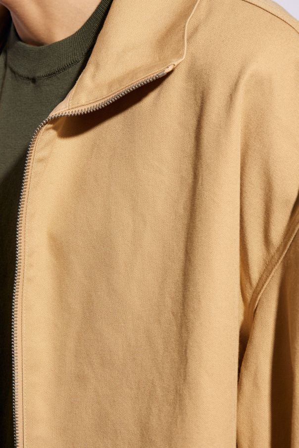 Beige jacket with a stand collar from JIL SANDER+. Made of cotton, this long sleeve design features a zip fastening, logo-embossed patch at the back and two slip pockets.