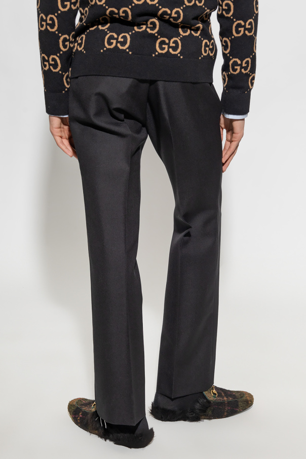 Black pleat-front trousers from Gucci. Made of a wool and mohair blend, this pair features zip and hook fastenings, two slip pockets, two buttoned pockets and wide legs.