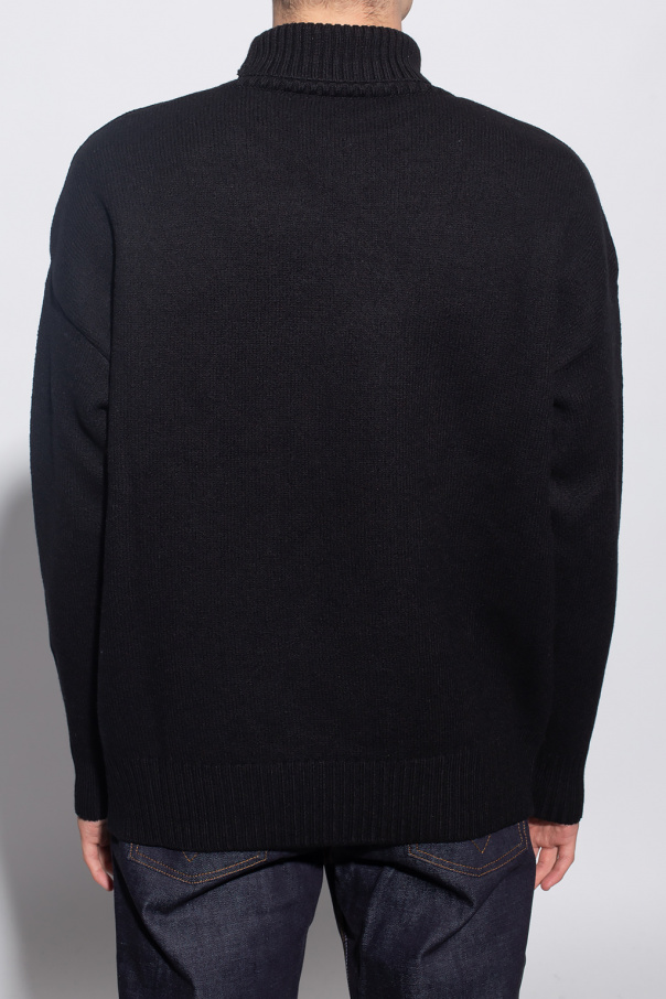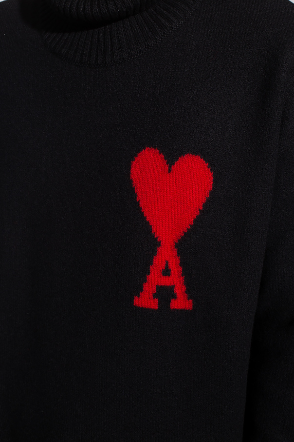 Black turtleneck sweater from Ami Alexandre Mattiussi. Crafted from wool, this garment features a red logo pattern and ribbed trims at the collar, hem and cuffs.