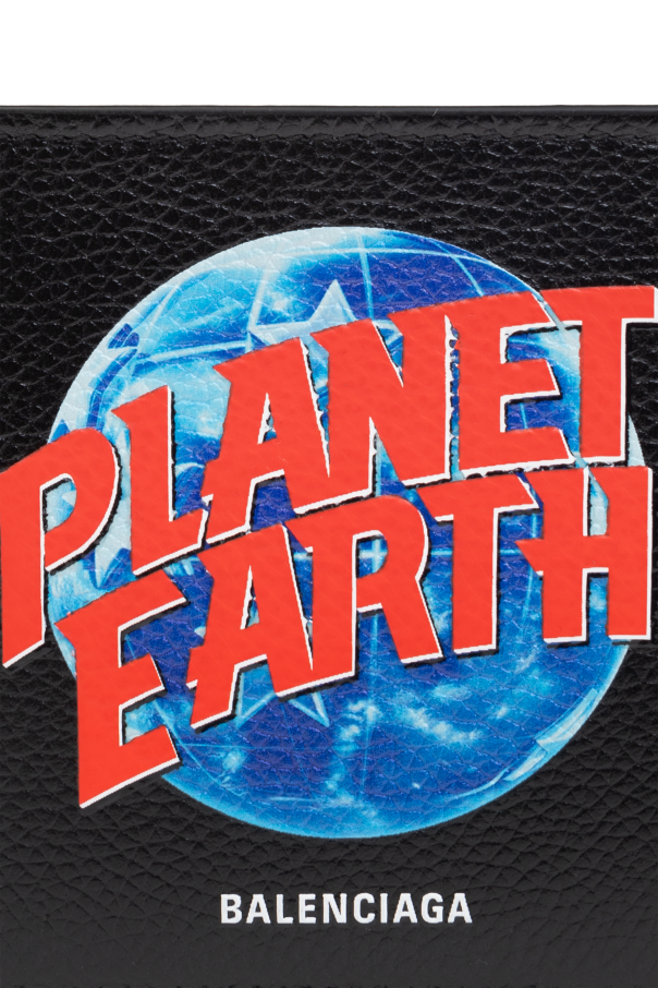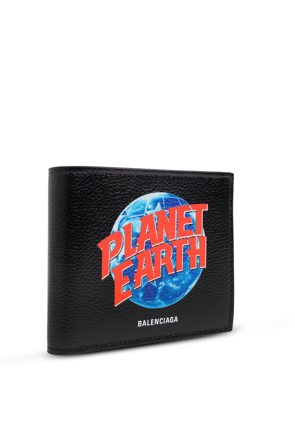 Introducing the Leather Wallet with Print from the exclusive collection of the esteemed brand, Balenciaga. This sophisticated black wallet is adorned with a vibrant print depicting a blue Planet Earth and the striking red inscription \"PLANET EARTH\". Below this captivating print, the iconic \"BALENCIAGA\" logo is elegantly displayed in white. Crafted from exquisite leather, this wallet embodies the luxury synonymous with Balenciaga. It features a classically elegant design, offering ample space with two bill compartments, two slip pockets, and eight card slots. The back of the wallet remains sleek and unembellished, allowing the front\'s artistry to truly shine. Why Choose This Product? Timeless design with a modern artistic flair. Ample storage with two bill compartments and eight card slots. Premium quality leather for durability and elegance. Part of Balenciaga\'s heritage, combining craftsmanship with contemporary trends.