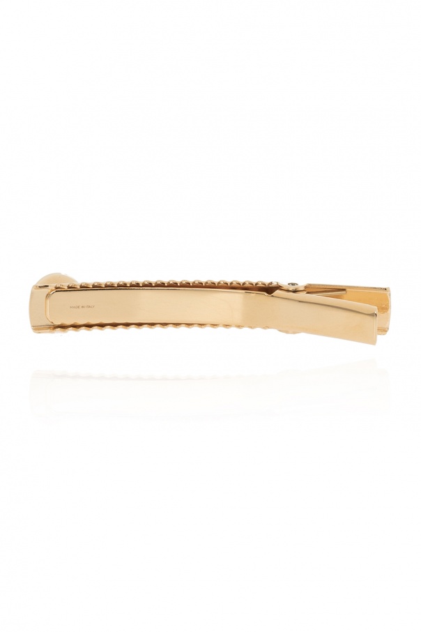 Gold-tone hair clip from Salvatore Ferragamo. Made out of brass, this accessory comes with a distinctive white ornamentation.