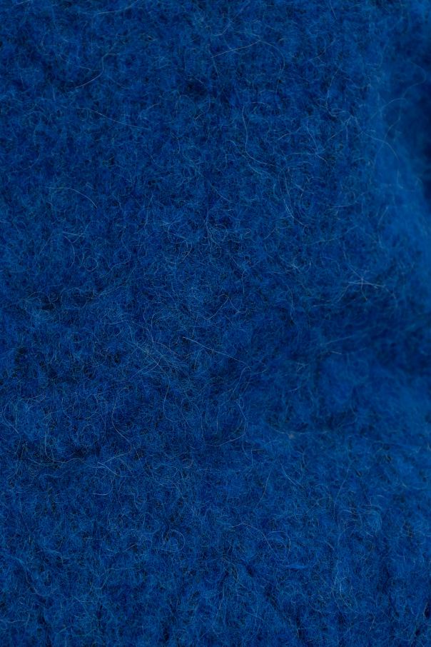 Dark blue ‘Galini’ sweater with a standing collar from Marant Etoile. Crafted from an alpaca blend with an open-weave knit, this style features puff long sleeves and ribbing on the bottom hem and cuffs.
