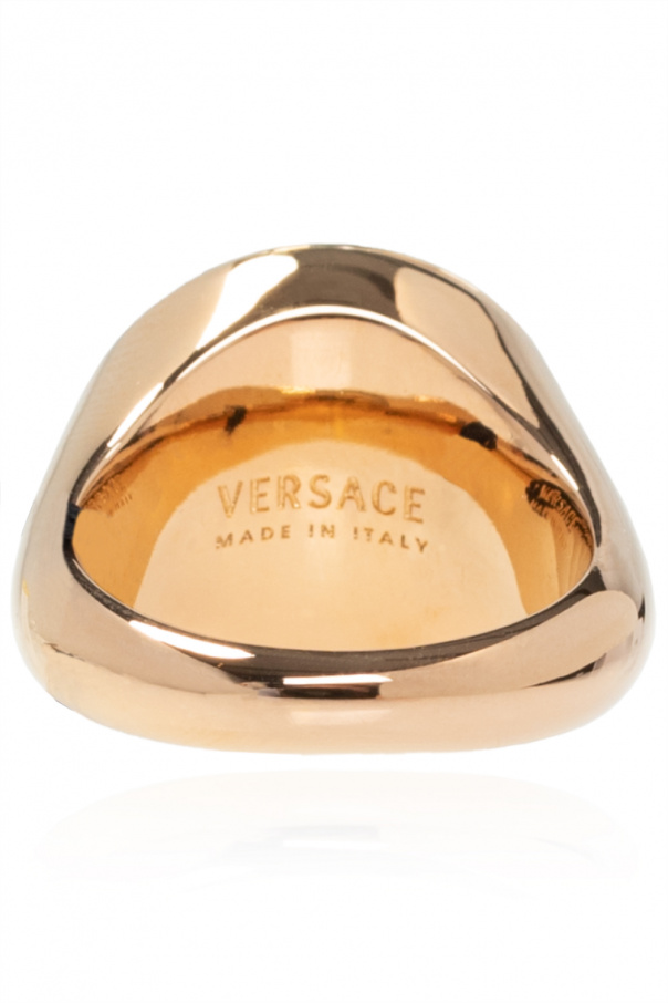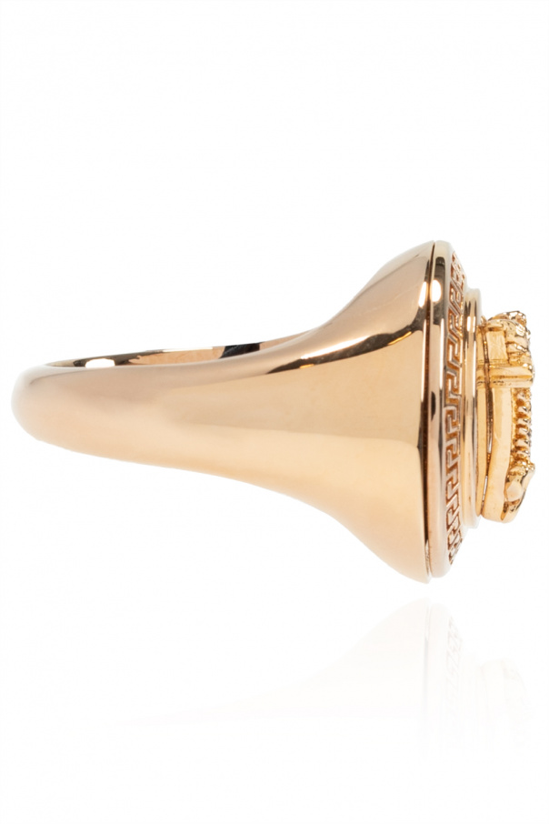 Gold-tone signet ring with a logo and the iconic Greek pattern from Versace.