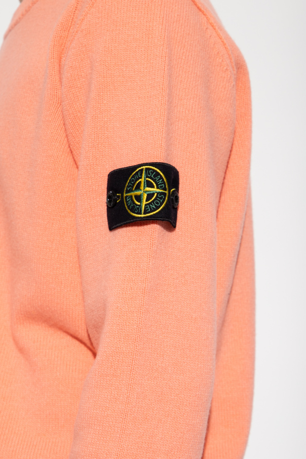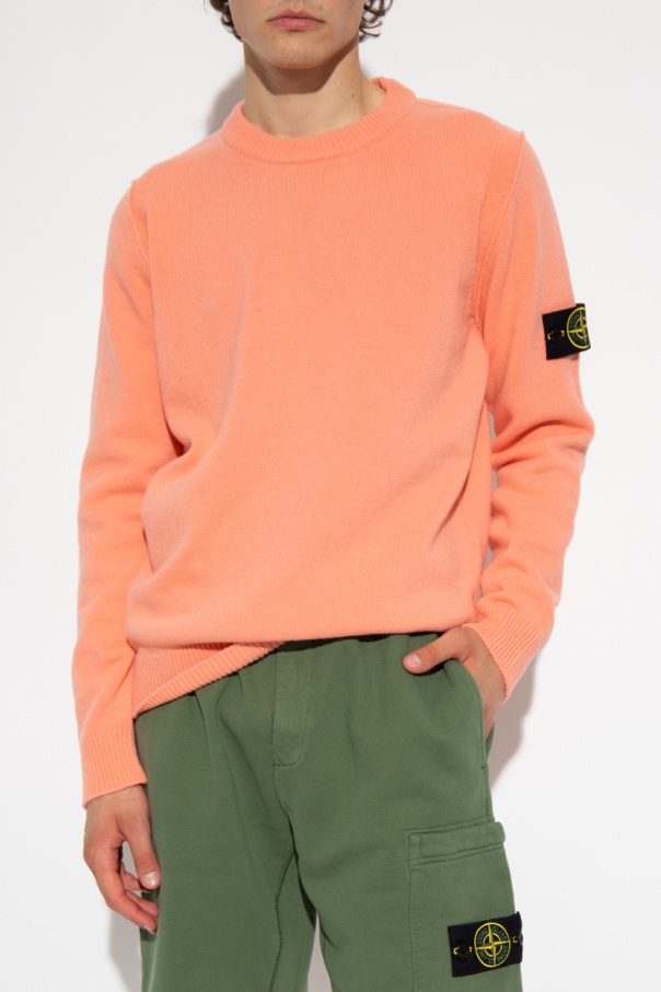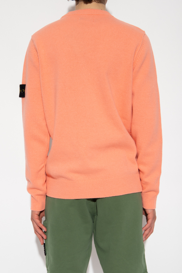 Pinkish orange sweater from Stone Island. Made of wool, this garment features a detachable logo patch and ribbed trims at the crew neck, hem and cuffs.