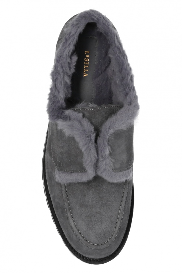 Light grey ‘Yacht’ moccasins from Le Silla. Crafted from leather, this design features a round toe and a black rubber sole.