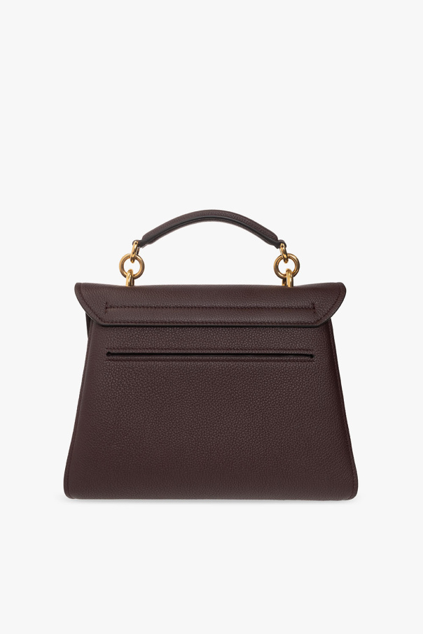 Brown ‘Margot’ shoulder bag from FERRAGAMO. Crafted from grained calf leather, this design secures with a signature Gancini fastener and showcases an embossed logo on the flap, a back slip pocket, a short chain handle, a detachable and adjustable shoulder strap, gold-tone metal hardware and two separate compartments with three slip pockets inside.