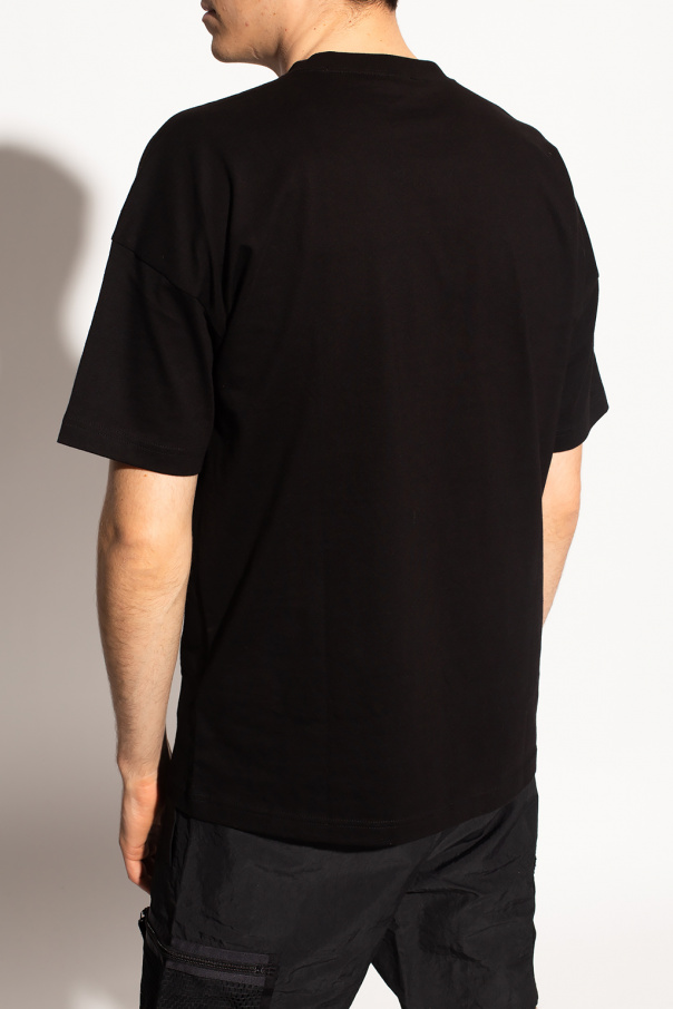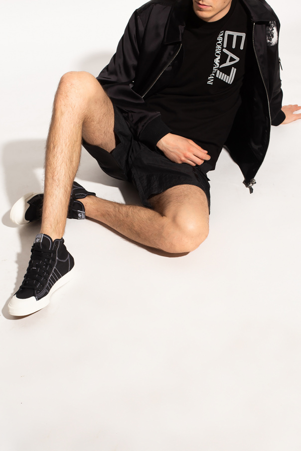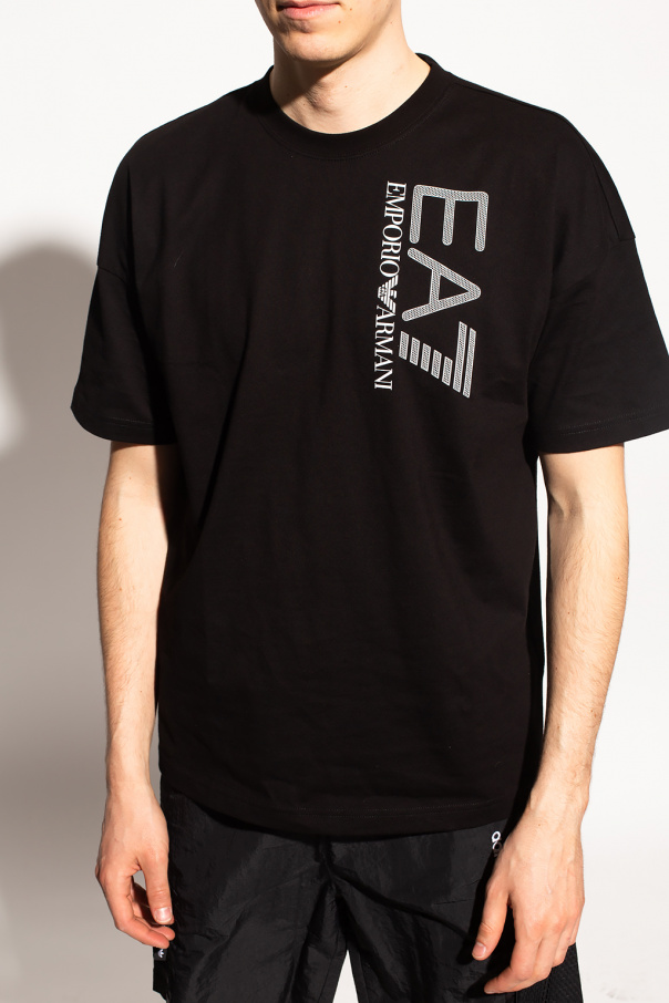 Black crewneck T-shirt from EA7 Emporio Armani. Made of cotton, this garment is decorated with a white logo print.