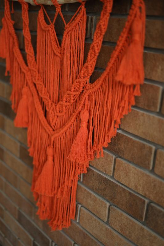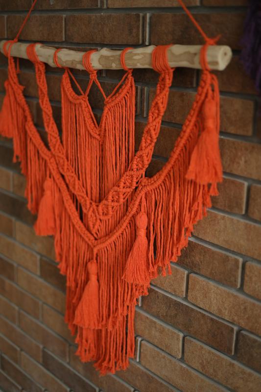 Підвіска на стіну виготовлена в техніці макраме з бавовняного шнура.