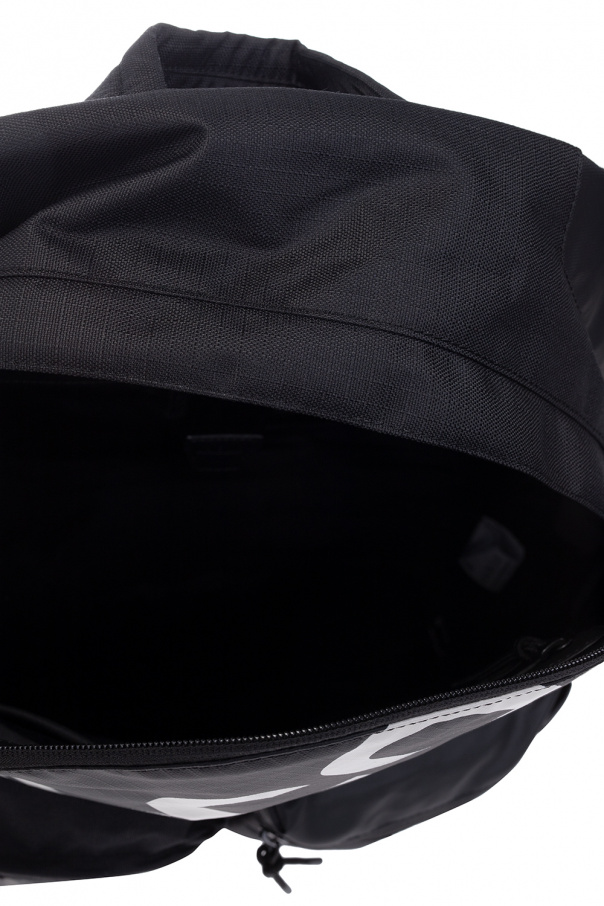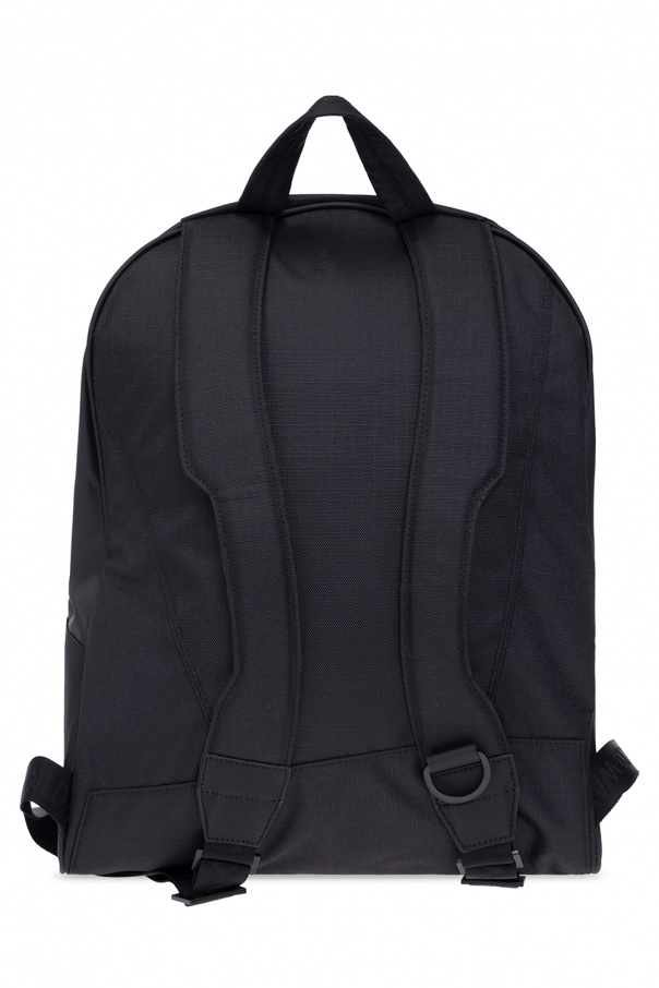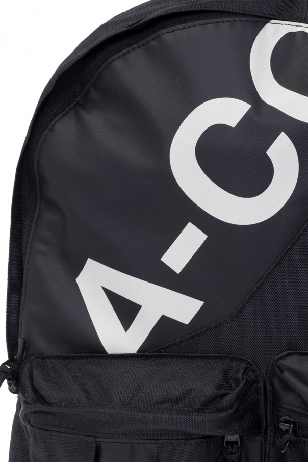Black backpack from A-COLD-WALL*. Fastened with a two-way zip, this model features a white pattern, logo-embossed patch, two zip pockets, half-round handle, adjustable shoulder straps, black metal hardware and one internal compartment with two slip pockets, one zip pocket and a laptop compartment.