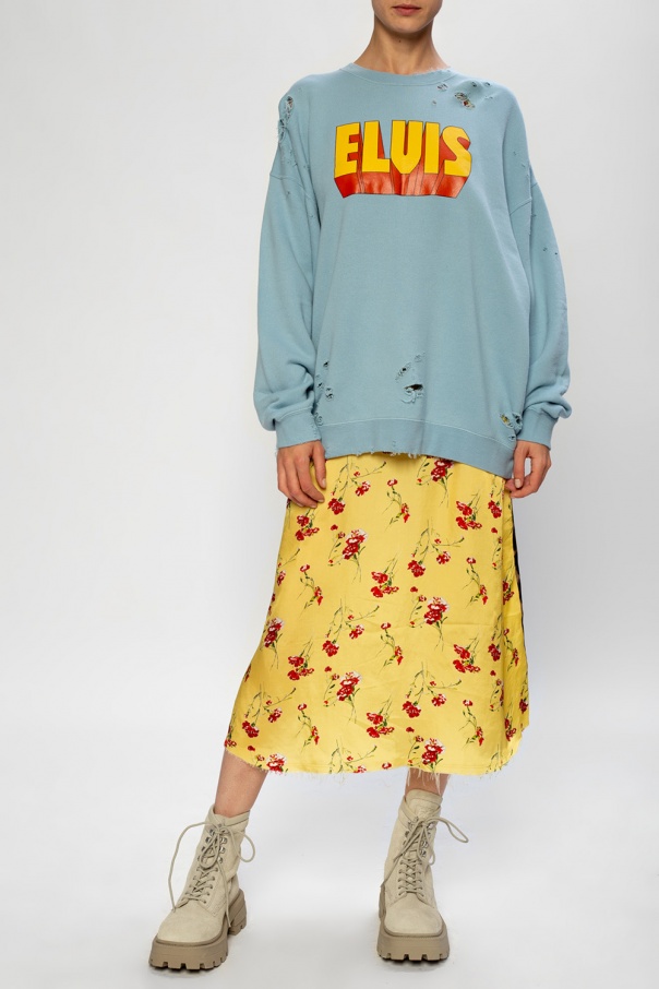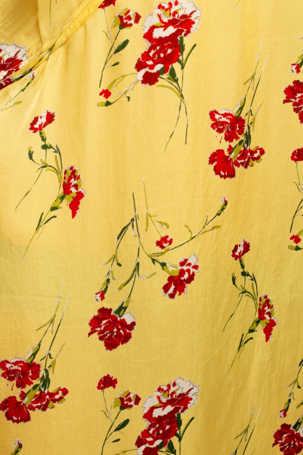 Yellow slip dress from R13. Illustrated with white, red and green floral motif and black and brown leopard print, this sleeveless design was crafted from silk and features V-neckline, zip fastening on the back and raw edges for an unfinished, distressed effect.
