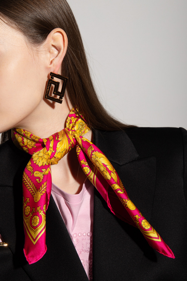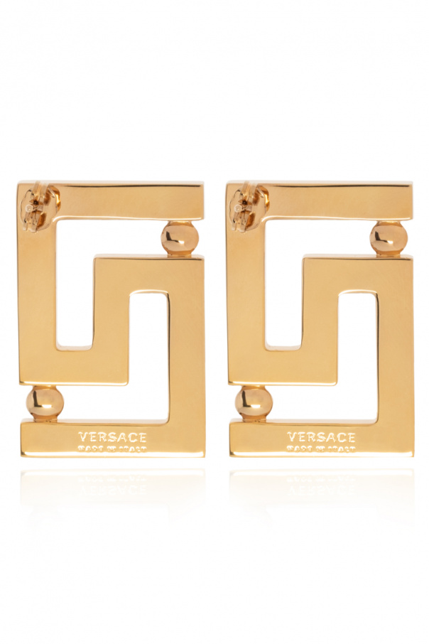 Gold-tone earrings from Versace. This pair comes enriched by the iconic Greek pattern and an embossed logo.